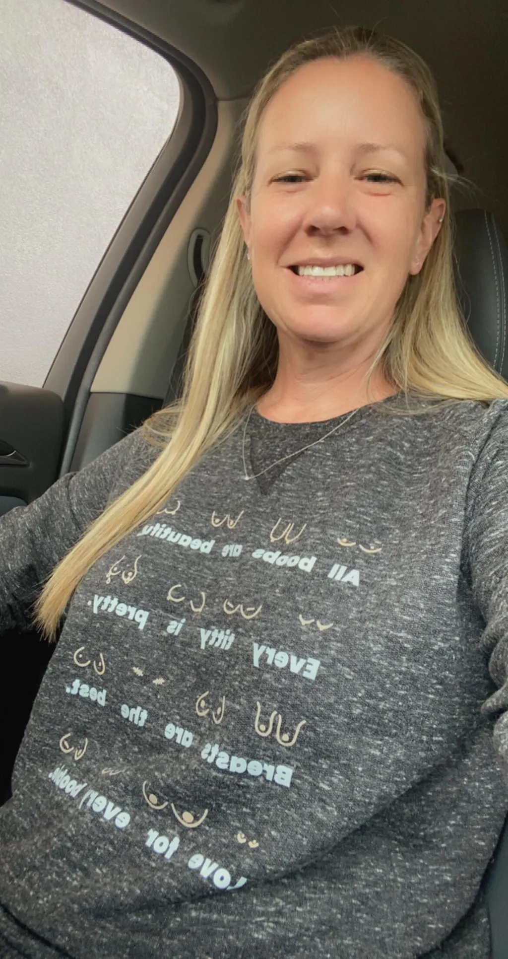 A soft fleece, feminist crewneck designed to be cozy and comfortable. It features affirmations for celebrating and loving the body you live in.