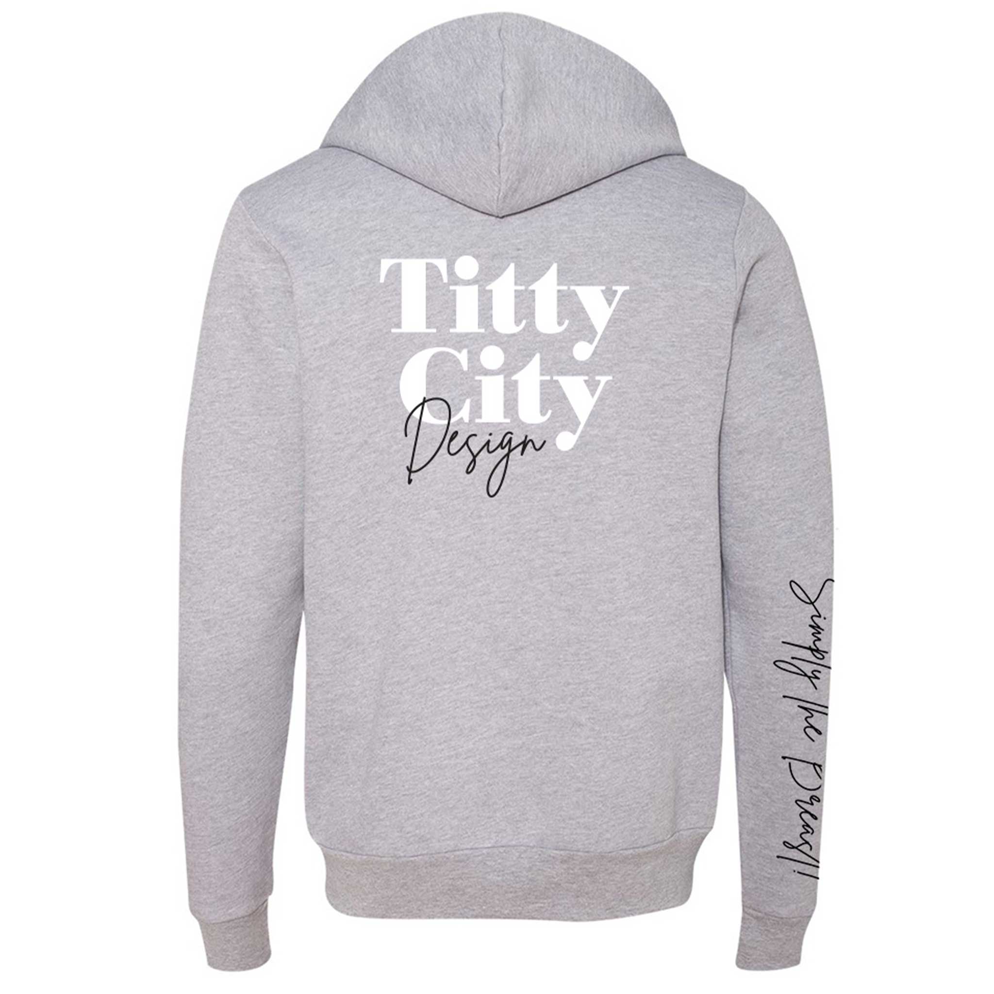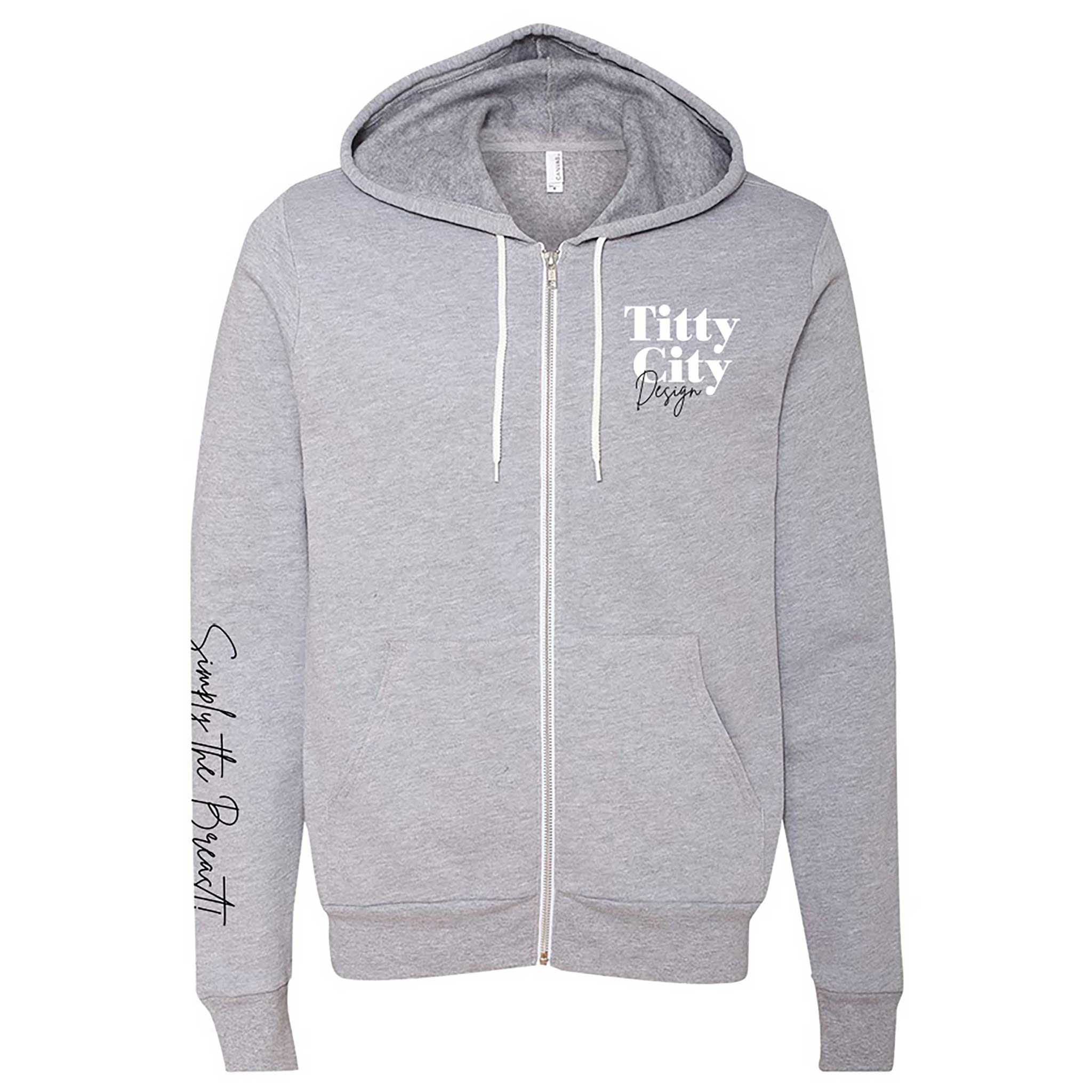 Featuring the Titty City logo on the left chest, a bold oversized logo across the back, and our “Simply the Breast” graphic down the sleeve, this zip hoodie makes a statement from every angle.