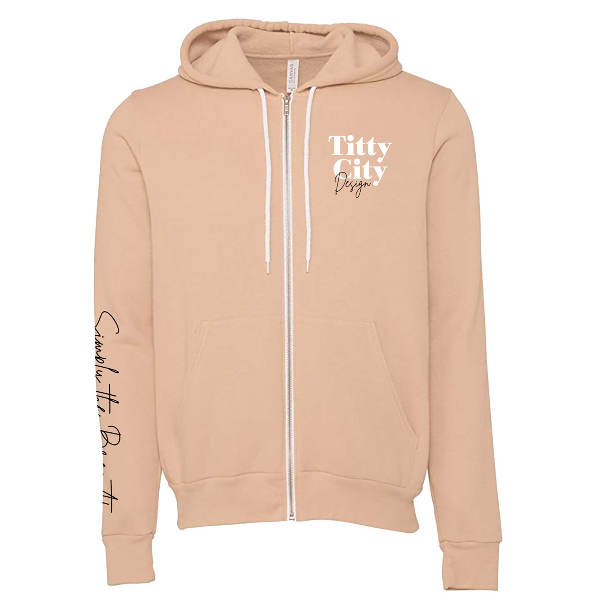 The Titty City Brand Zip-Up Hoodie is a soft fleece layer designed for comfort, confidence, and everyday visibility.